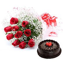A very special loveA chocolate cake and a dozen red rose bunch would be the perfect gift to send for a very special love.
