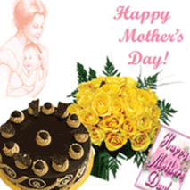 Best Wishes 424 orange or yellow roses bunches and mother's day card with chocolate cake.