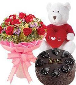DelightfulA delightful living gift suitable for any occasion 24 inch teddy Bear give hugging feelings with I LOVE PILLOW, chocolate cake and 12 red roses bunch type express your love, a perfect gift to express your emotions.
