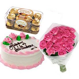 Miss u honey12 Pink Roses Bouquet with mocha caramel 1 kg and Ferrero Rocher 16-pcs the cake is from 5-star hotel