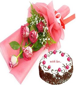 W/ loveHaft dozen pink roses bouquet w/ cake for your someone special.Your gift will come with a greeting card