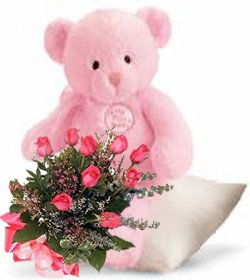 �-Being With You-�Make your beloved feel special with this romantic 12 Red Rose Bouquet with 24 inches pink teddy bear