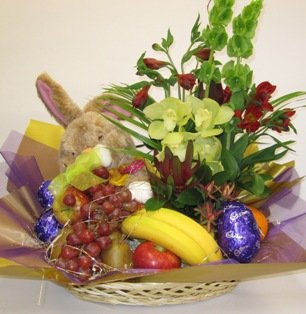 Always BeautifulThe perfect choice! - This Gift Basket is filled with 6 items fresh fruit, flowers and a few chocolate for them to enjoy. The best of both worlds.