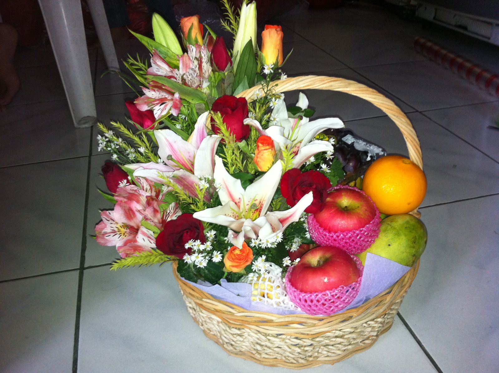 6 items fruit basket with flowers for your dad.