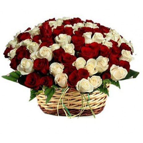 mother4You48 Red and white Roses one sided Basket arrangement.