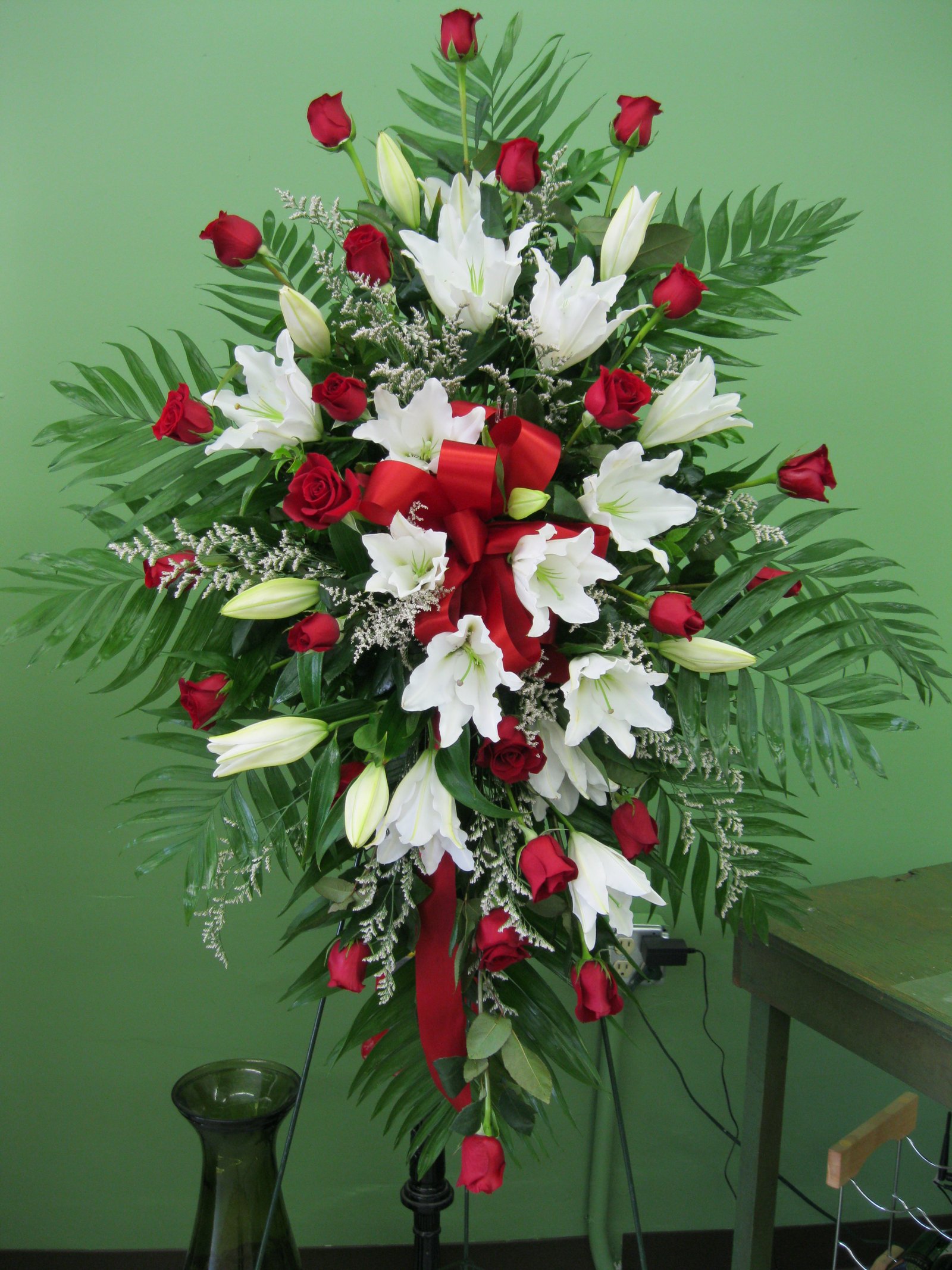 White lily & red rose sympathyNo Product Detail Available