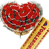 Your Love Is PreciousA beautiful arrangement of 3 dozen red roses in a heart shape basket with ( 6 packs x 50 gm each)toblerone that'll make her feel really special.