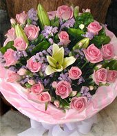 Only love sweetheart21 Pink Roses, 2 Lilies, jasmine.