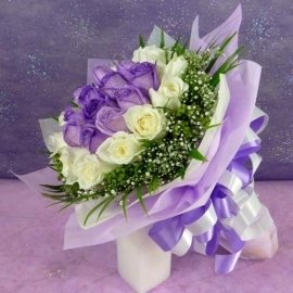 24 Roses ( 12 BLue, 12white ) Bunch