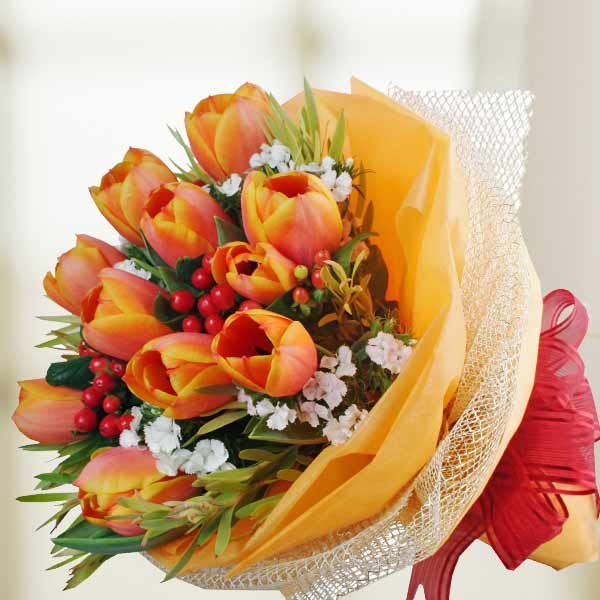10 Orange Tulips Hand Bouquet