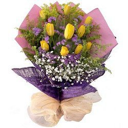 Yell0w Tulip Bouquet"Presentation" - beautiful 10 pieces of yellow tulips are they key to anyones heart. Note: Color may vary.